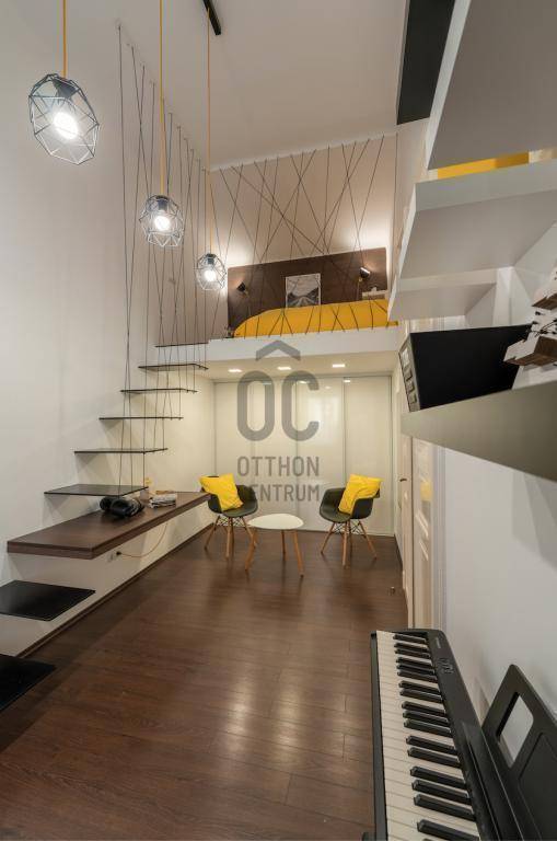 Első emeleti, 113 m² hasznos alapterület (98 m² + állógaléria), ami tényleg levegőt ad.