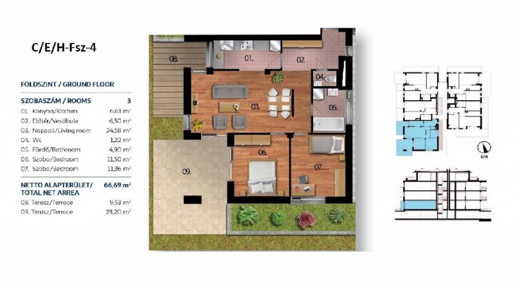 Valamennyi lakáshoz lehetőség nyílik garázs vásárlására, illetve választhatók 5-10 négyzetméter nagyságú tárolók.