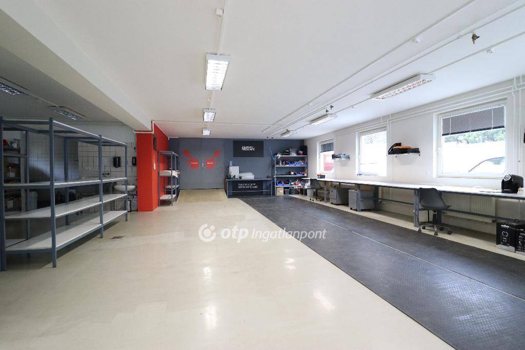 Földszint: 207 nm-es csendes tevékenységre kiváló részben csempézett raktár/műhely/szervíztér, tágas és világos iroda 2 fő számára, 2,7m belmagasság, fűtött, sűrített levegős rendszer, leválasztott vizesblokk (mosdó és zuhanyzó), tároló, konyharész, műgyanta burkolat. További 200 nm-es fűtetlen 4,5 - 5,5 m belmagasságú raktár, ami a műhellyel közvetlenül összekapcsolt, két szinten biztosít tárolási lehetőséget. Ajánlom webshop üzemeltetésre, szervízre, kisebb volumenű gyártás vagy egyéb csendes ipari tevékenységre.