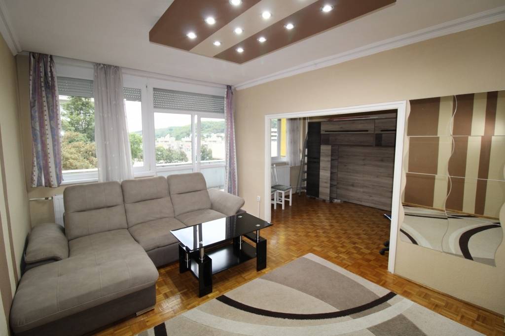 Salgótarján, Pécskő út elején, dupla liftes házban kiadó, egy jó állapotú, parkettás, felújított, távfűtéses lakás.