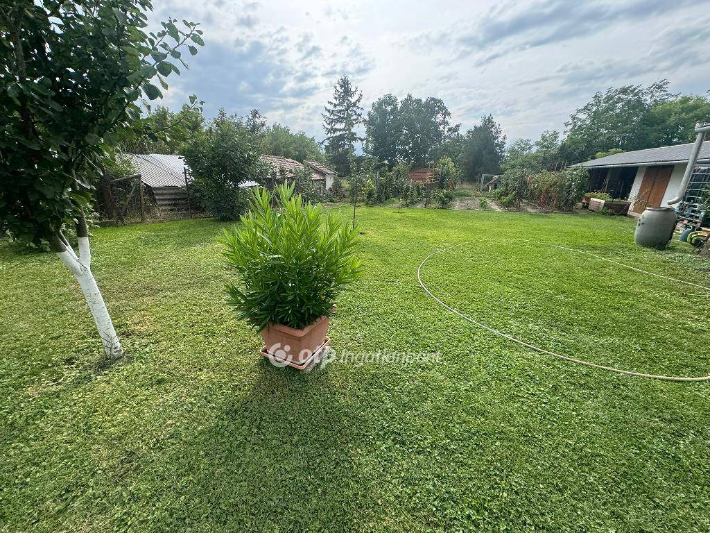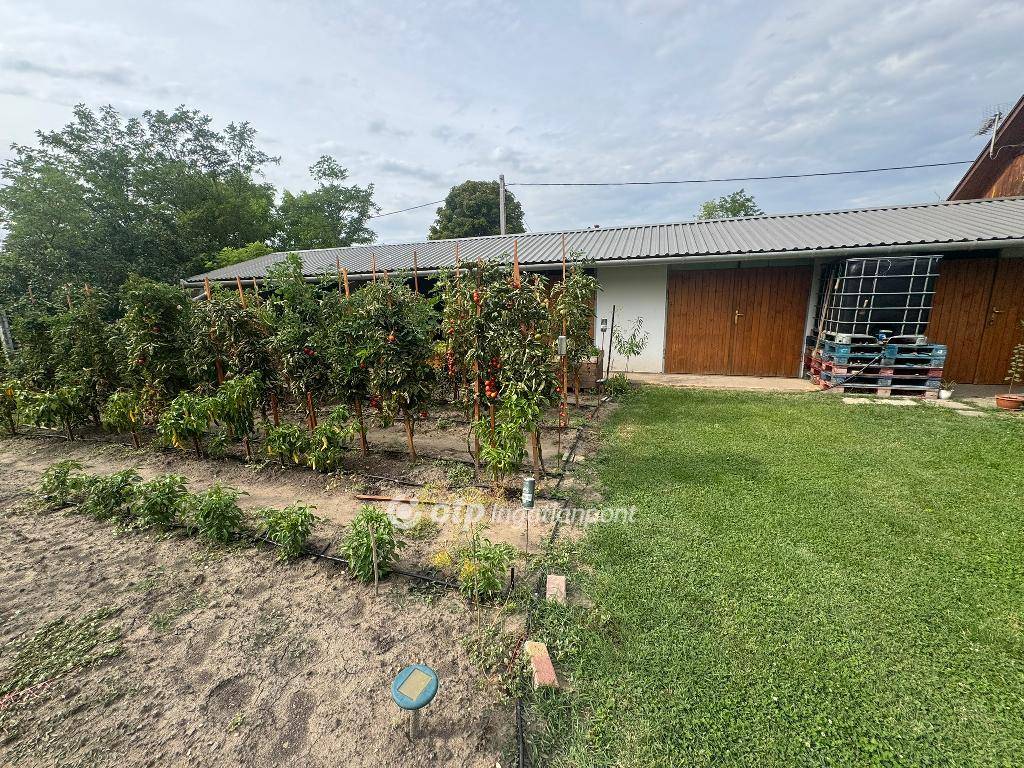 Udvara körbekerített, gondozott, rajta kerti csap, ásott kút, fúrt kút, melléképület (3 garázsméretű helyiséggel, fedett, 3 oldalról zárt, elöl nyitott tárolóval), gyümölcsfák (3 szilva, 2 füge), szeder, málna, szőlő, veteményes.
