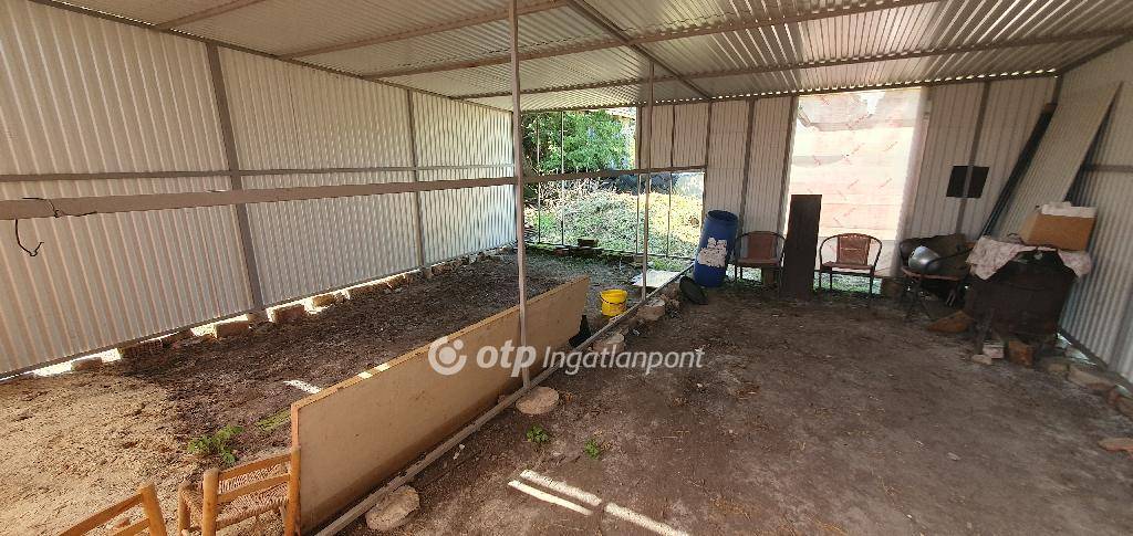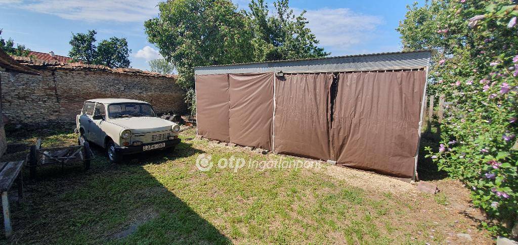 A telek hátsó részén egy 36 nm-es két kocsi beállós zárt lemez garázs található.