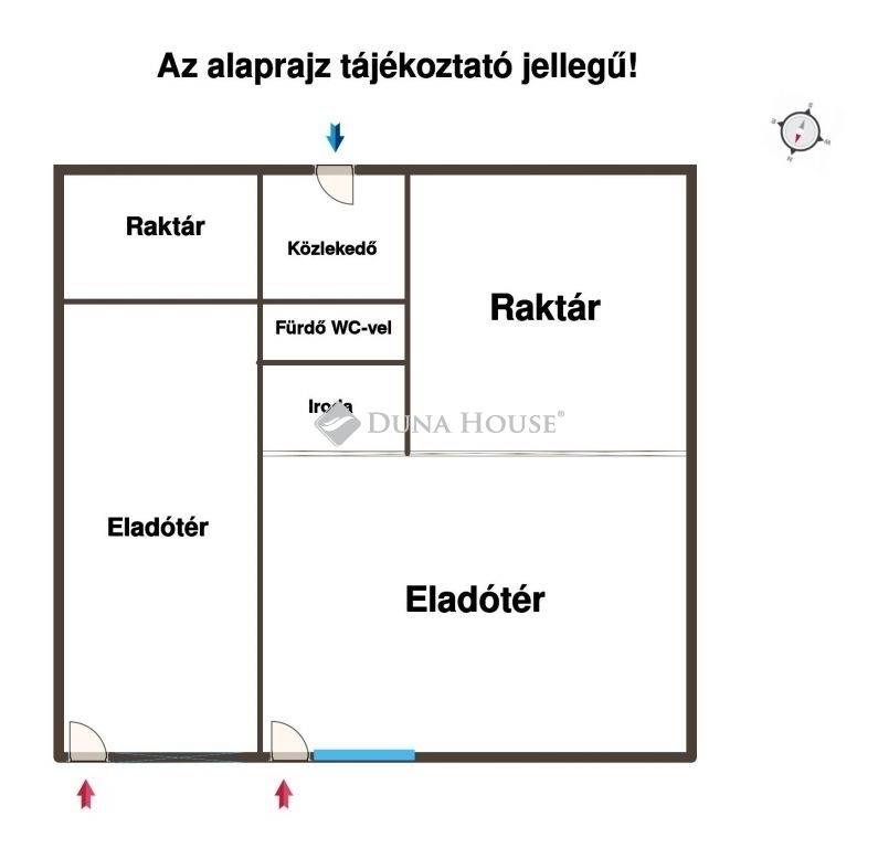 A helyiség nettó 165 m² eladótérrel rendelkezik, kiegészítve raktározási lehetőséggel, kiszolgáló helyiségekkel.