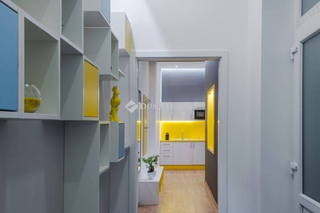 Egy ingatlan, de két különálló apartman. A Vörösmarty tér közelében, csendes, sétáló övezetben, híres, történelmi, turisztikai látványosságok, éttermek, szórakozóhelyek szomszédságában található dizájnos, felújított, befektetésnek is tökéletes dupla lakás.