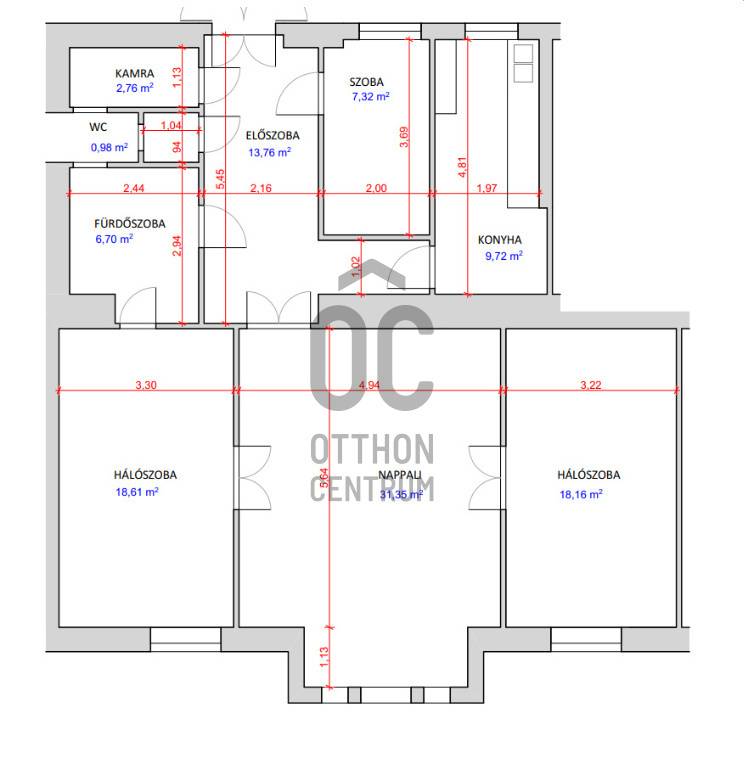 A nagy alapterületű nappali mellett a lakásban 3 külön nyíló szoba van, így akár három hálószoba is kialakítható, ezen kívül megtalálható egy konyha, egy fürdő, egy wc és egy nagy méretű kamra is.