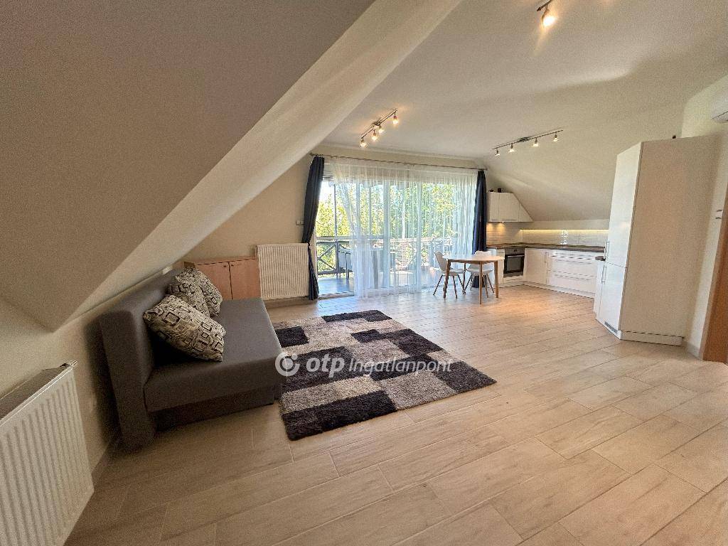 A helyiségeket minőségi burkolatok jellemzik: a hálószobákban laminált parketta, míg a többi helyiségben feszültségmentesítő réteggel ellátott kerámialap található. A tetőtéri ablakokon napelemes, távirányítós redőnyök biztosítják az árnyékolást, a műanyag nyílászárók pedig redőnnyel és szúnyoghálóval felszereltek. A lakás esztétikailag és műszakilag is kiváló állapotban van: új, falba süllyesztett vezetékek, energiatakarékos LED világítás, üvegszálas tapéta, beépített Geberit WC, valamint riasztórendszer távfelügyeleti csatlakozással garantálják a modern kényelmet. A lakáshoz kocsibeálló tartozik.