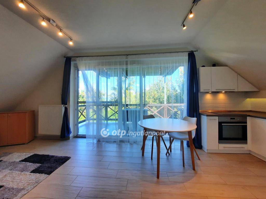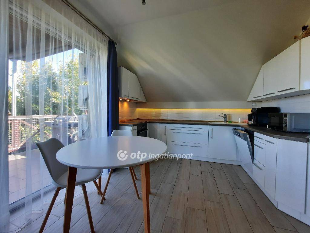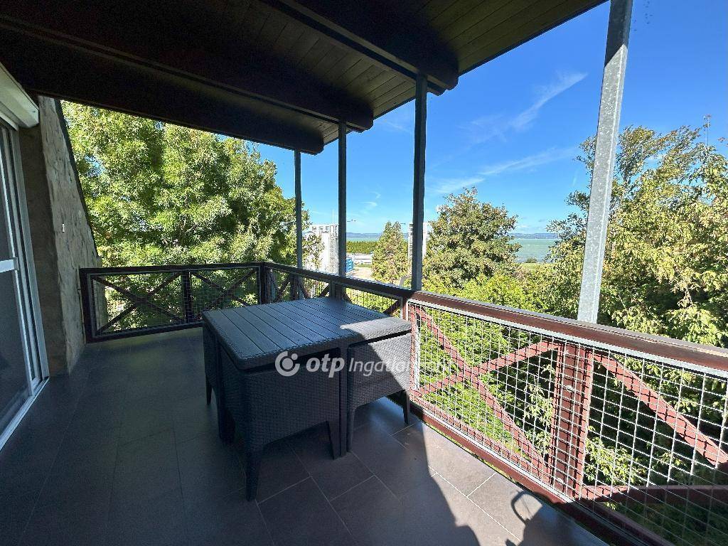 Az ingatlan elrendezése praktikus és élhető: amerikai konyhás nappali, két hálószoba, fürdőszoba és előszoba található benne, valamint egy terasz, ahonnan kilátás nyílik a Balatonra. A lakás északi fekvésű, világos, kellemes klímájú, egész évben jól használható. A fűtésről egyedi gáz-cirkó rendszer gondoskodik, a szobákban és a nappaliban pedig inverteres hűtő-fűtő klímaberendezés is található. Minden közmű egyedi mérőórával rendelkezik.