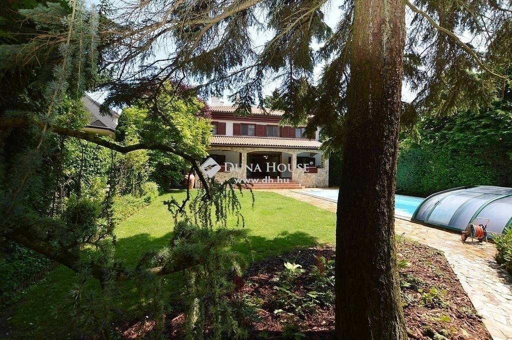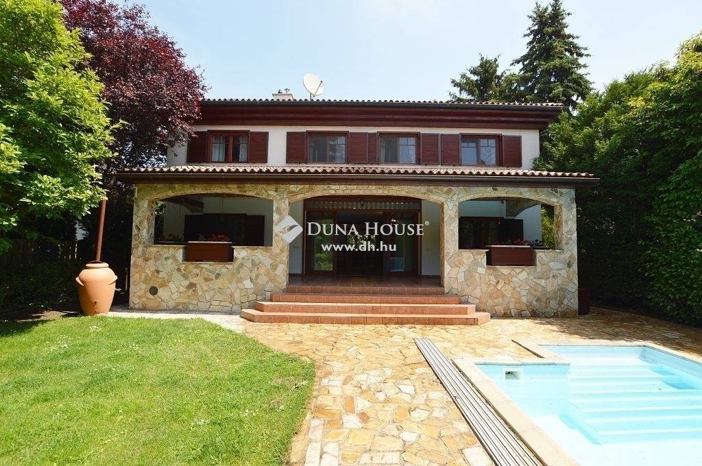Budaligeten eladó egy nappali + 5 szobás, mediterrán stílusú, medencés családi ház.