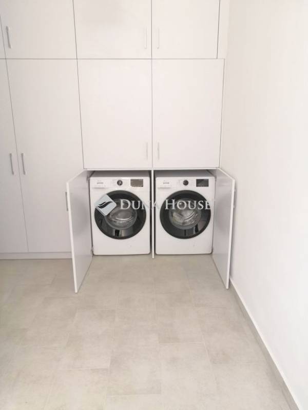 A bejárat előtt egy kifejezetten praktikus, zárt előtér található, ahol egy hatalmas beépített szekrény is megtalálható, kulturált, rendezett tárolási lehetőséget biztosítva az ingatlant használók számára, akár kerékpár, roller biztonságos parkolására is alkalmas. A helyiség mosókonyhaként is hasznosítható, melyhez mosógépkiállás és mosógép is telepítésre került.