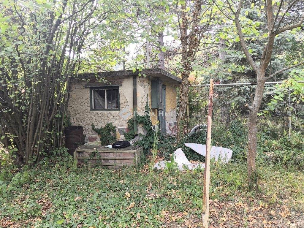 Az ingatlan a környéken megszokottnál szélesebb utcafronttal rendelkezik, dupla telek. Egy 20m2 körüli tégla, hagyományosan épült tárolóépület, egy kb. 22-25m2-es, alápincézett, terasszal is rendelkező, vasbeton födémes felépítmény, és egy további 10m2 tároló találhatóak rajta. A felépítmények a térképszelvényre is fel vannak vezetve.