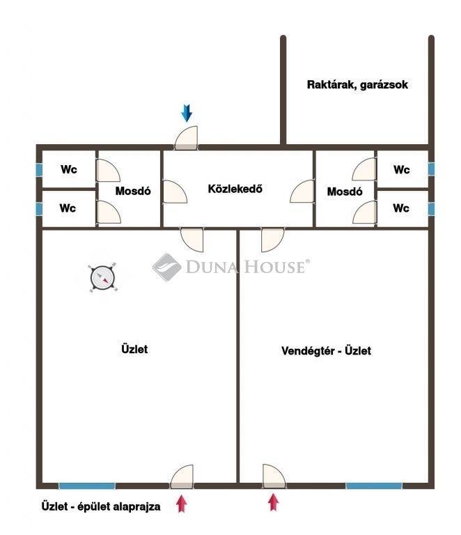 - Egy 100m2 méretű, vállalkozásra alkalmas épület, mely üzlet és vendéglátóhely besorolással is rendelkezik. Két nagyobb (40m2-es) utcai bejáratú üzlethelyiség található benne, illetve a hozzá kapcsolódó mosdók, vizesblokkok. Az épület jó állapotnak örvend, korábban tetejét felújították, külső homlokzata is rendezett.