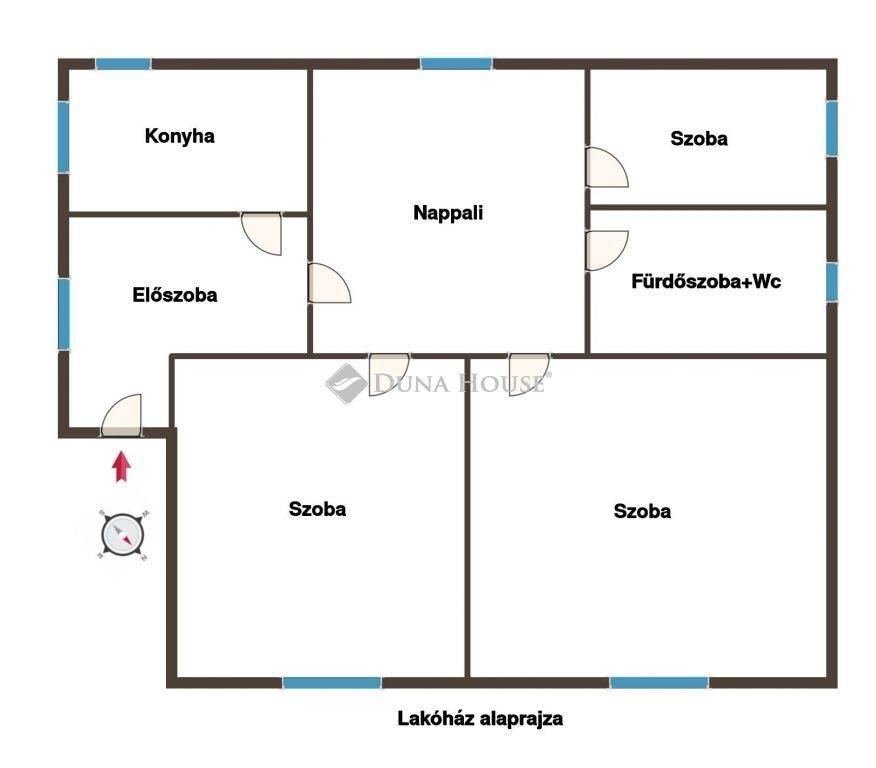 - Egy 85m2-es, nappali + 3 hálószobás lakóház, mely a szobákony kívül ablakos konyhát, fürdőszoba+wc-t és egy előszobát tartalmaz. A ház tégla építésű, cserép fedésű, igény szerinti felújítás után költözhető állapotban van. Fűtését gázkonvektorok szolgáltatják.