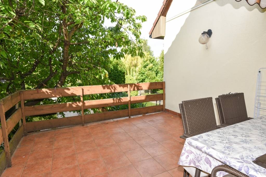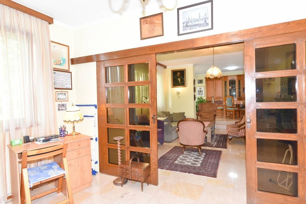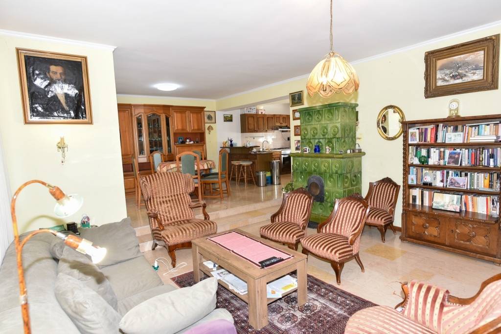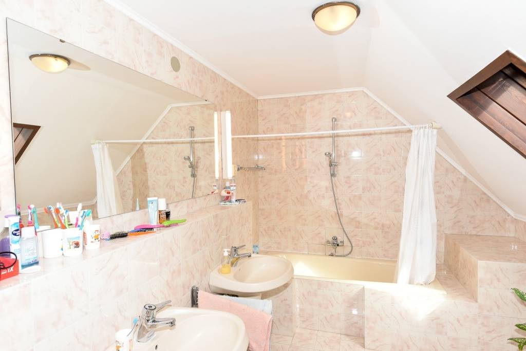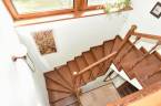 A ház középső szintjén HATALMAS, NAGY BELMAGASSÁGÚ nappali-étkező-konyha található (50 m2), amelyből hálószoba/dolgozószoba és egy 13 m2-es terasz is nyílik. A klimatizált tetőtérben három nagy és egy kis hálószoba található, itt a belmagasság 235 cm.