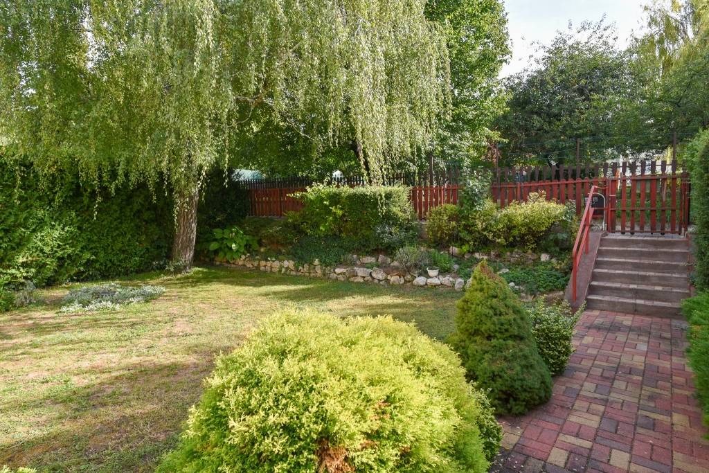 A három szintes,1986-ban épült polgári stílusú ingatlan egy négy ingatlanból álló házsor része, amely két bejárattal rendelkezik, a telket is két irányból lehet megközelíteni, két kertrészlet tartozik hozzá.