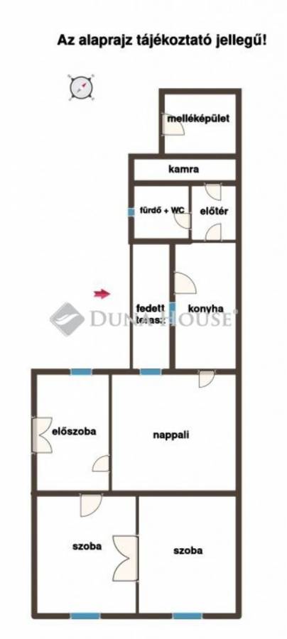 Közvetlen utcafronti kapcsolat. Séta távolságra a vasútállomás, illetve a busz megállója 80 méteren belül van, ;a műszaki tartalom: vízszigetelt betonsáv-alap, épületszerkezet: tégla, vasbeton födém, a tető (gerendák, tetőlécek) koruknak megfelelő állapotban van, fűtési rendszer: gázkazán, radiátoros hőleadással, kályha a vízvezetékrendszer-, villamos hálózat és nyílászárók többsége korszerűsítésre vár,;fenntartása a fent leírtakkal ellentétben viszonylag alacsony, hiszen az ingatlan teljes rezsiköltsége nem haladja meg az átlag havi 46.000 Ft-ot,