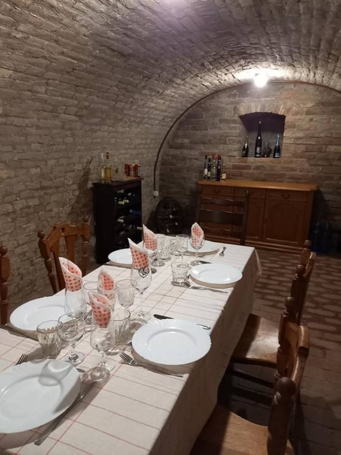 Vendégek részére felszerelt közös konyha, ápolt udvar és hangulatos borospince