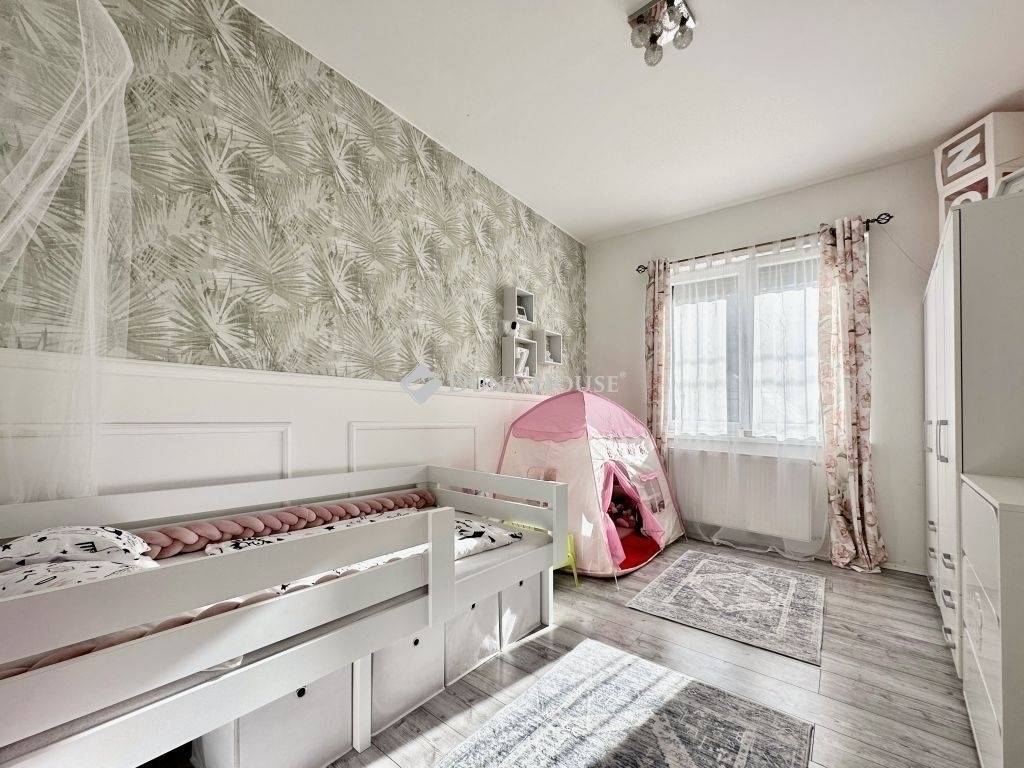A 103 m²-es lakótér egy 530 m²-es saroktelken helyezkedik el, ideális helyszínt biztosítva a család mindennapi életéhez. A ház tágas, világos belső terei és minimalista stílusa igazi otthonná varázsolják a helyet. A nappalihoz kapcsolódó 32 m²-es részben fedett terasz különleges lehetőségeket kínál: akár beépíthető is, így még nagyobb teret biztosítva a családi együttlétekhez.