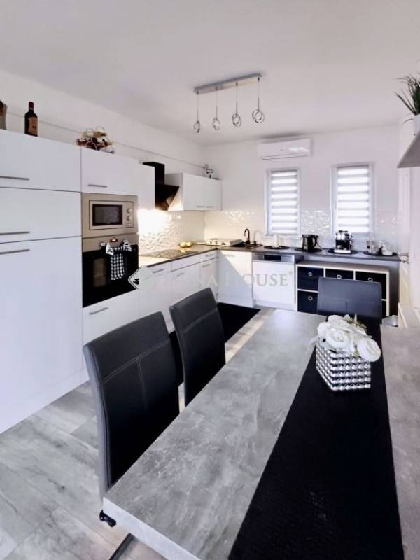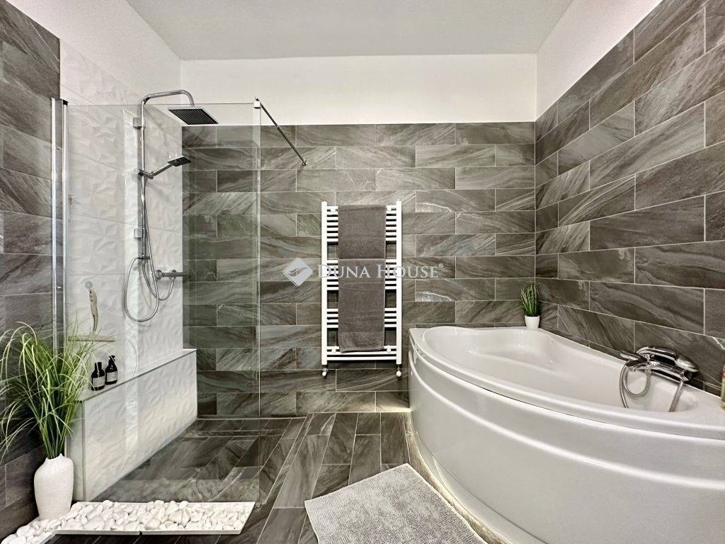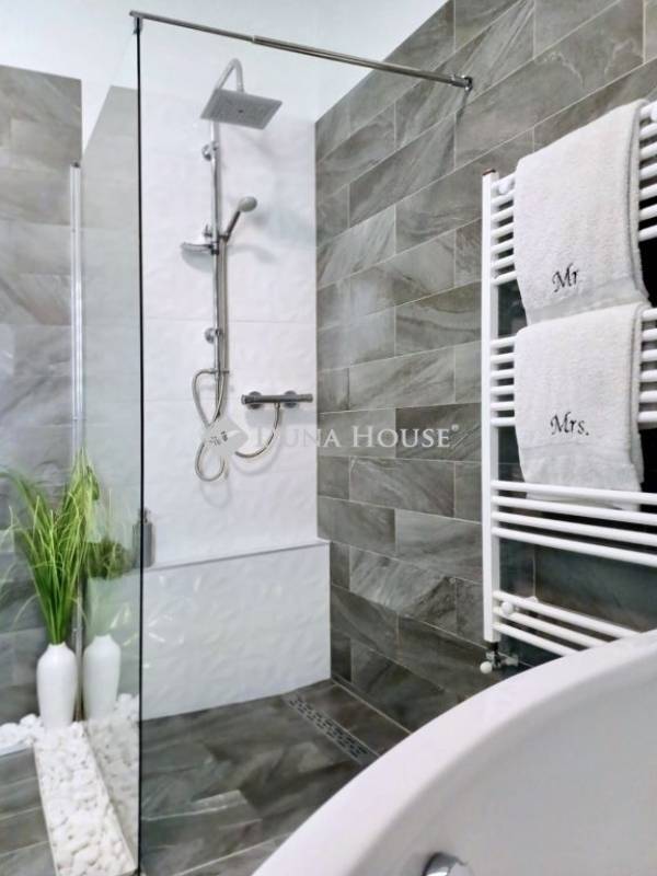 A ház fűtését gázkazán biztosítja, emellett 3,5 kW-os hűtő-fűtő klíma gondoskodik a kellemes hőmérsékletről egész évben. Minden helyiség magas minőségű laminált parkettával burkolt, a fürdőszobában padlófűtés és törölközőszárító radiátor fokozza a komfortot.