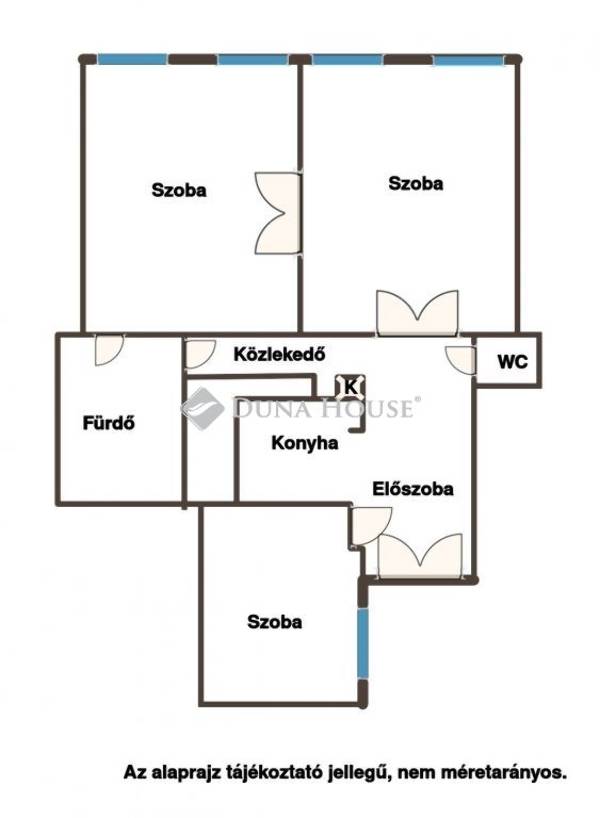 Mindkét utcafronti szoba 22 m²-es, és a kisszoba is közel 12 m²-es, külön helységben a konyha, egy kellemes méretű fürdőszoba és egy külön WC.