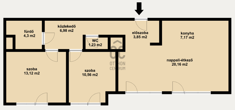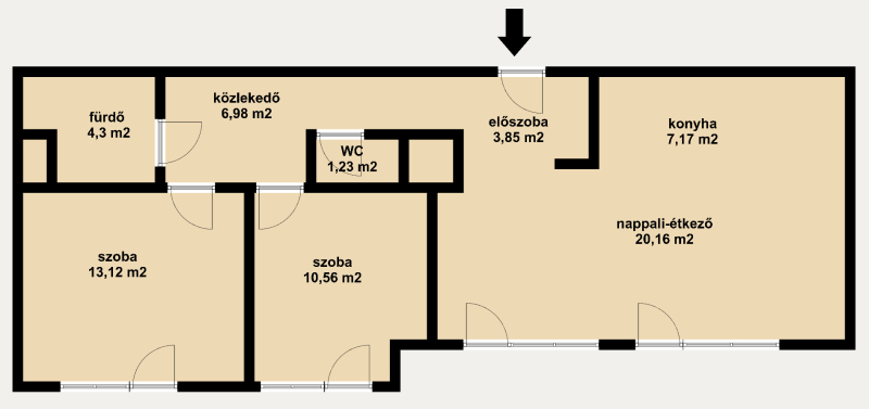 Nappali plusz két szoba: világos, jól kihasználható terek