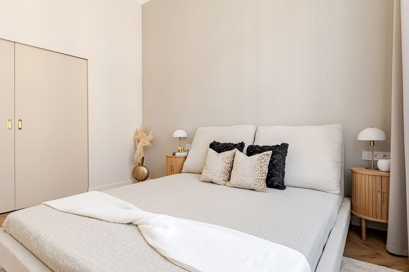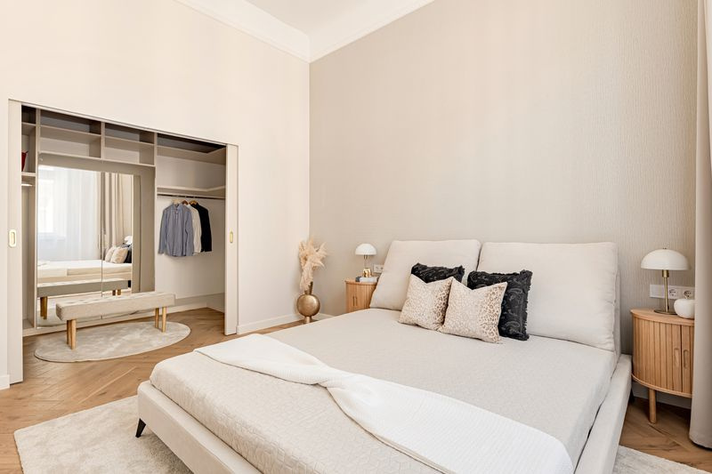 A 30 m2-es nappali-konyha-étkező hatalmas ablakai miatt nagyon világos, napos helyiség. Az új Whirlpool gépesített konyha indukciós főzőlapot, légkeveréses sütőt, mikrót, páraelszívót, mosogatógépet, hűtőt tartalmaz. Az impozáns méretű hálószobához egy 8m2-es walk-in gardróbszoba tartozik, mely igazi luxus-érzést nyújt.