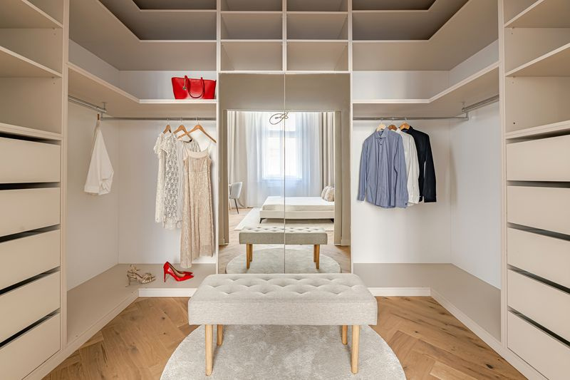 Az ingatlanban egyedi készítésű beépített bútorok találhatók, melyek sok tárolási lehetőséget biztosítanak.