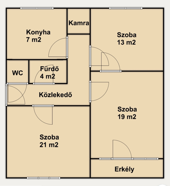 A nagyszobából nyílik egy 4 négyzetméter nagyságú erkély.
