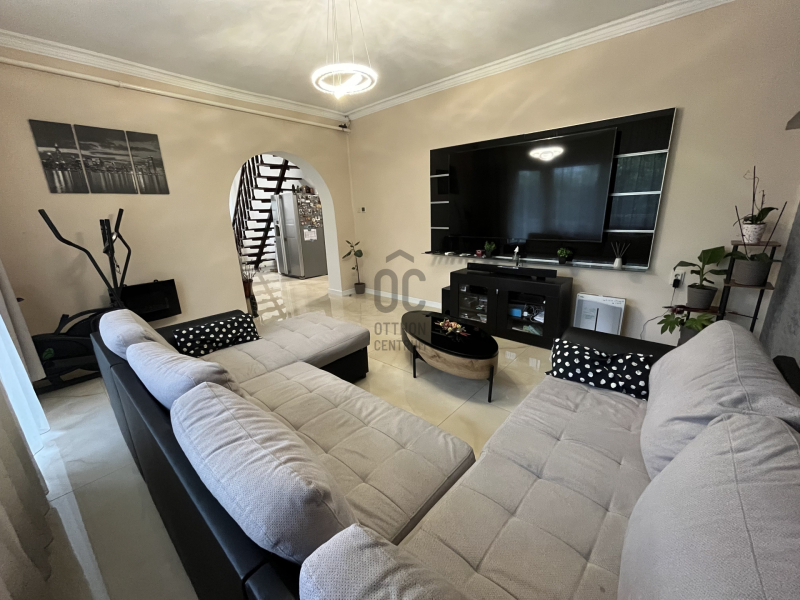 Az ingatlanban öt szoba található, melyek közül a nappali kiemelkedik, ideális helyszínt biztosítva a családi összejövetelekhez és baráti találkozókhoz.