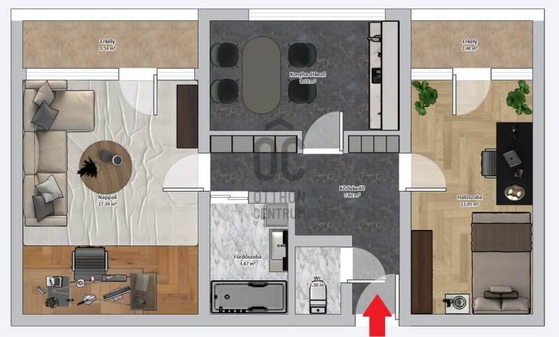 - A nettó 53 m2-es lakás, 2 erkélyes.