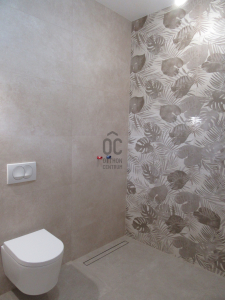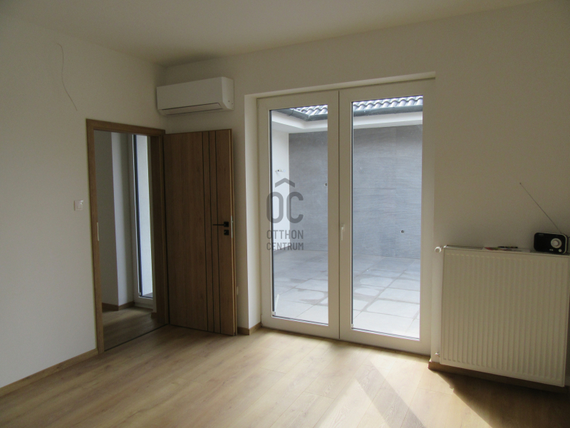 A házba belépve tágas előszoba fogad minket, innen jutunk a hatalmas (46 nm) nappali-konyha-étkezőbe. A lakótérből nyíló teraszok egyike egy különleges 23 nm-es átriumos szeparált terasz. Minden szoba tágas, világos és jól bútorozható. A zárt garázson kívül lehetőség van a telken belül több autó beállására.A szobákban és a vizes blokkokban padló és radiátoros fűtés, a többi helyiségben padlófűtés van, a ház helyiségeinek hőmérsékletét külön-külön wifis termosztáttal szabályozhatjuk.Az ingatlan kivitelezése magas műszaki tartalommal, színvonalas minőségben készült, igényes hideg-meleg burkolatokkal. Minden nyílászáró elektromos, hőszigetelt aluredőnyökkel és rovarhálóval felszerelt, a redőnyök helyiségenként távvezérelhetőek.