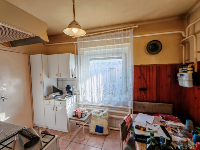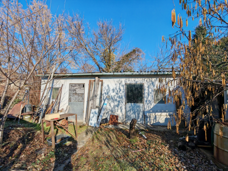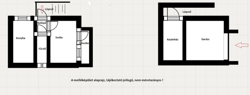 A telken hátul lévő, szintén téglaépület, pince szintjén garázs és kazánház, az emeleti szinten, konyha, belépő, fürdő, szoba, és beépített terasz van. Ez is ALKALMAS LAKHATÁSRA!