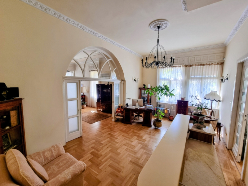 A közkedvelt Amerikai úthoz közel,1918- ban épült villa épület magasföldszintjén helyezkedik el, (alaprajzon zölddel körbe jelölve látható). A ház historizáló - eklektikus stílusban épült, az építész annak idején a házat saját magának tervezte, napjainkban folyamatosan karbantartott, állapot megőrzése, illetve javítása érdekében a társasház folyamatosan törődik vele, pályázatokon indul!