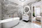 A lakás amerikai konyhás nappalival rendelkezik, mindkét hálószobához külön fürdőszoba tartozik: a fő hálószobához egy elegáns káddal, WC-vel és bidével felszerelt fürdőszoba kapcsolódik, míg a második szobához egy modern zuhanyzós fürdő. Az ingatlan prémium minőségű bútorokkal és gépekkel együtt eladó, így az új tulajdonos azonnal beköltözhet egy teljesen felszerelt, exkluzív otthonba.