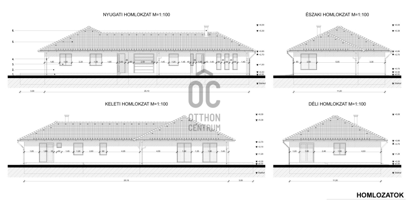 - Porotherm 30-as téglafalazattal, betoncserép ( Leier Toscana Classic) héjazattal, 15 cm-es homlokzati szigeteléssel,30 cm-es födémszigeteléssel, illetve 10 cm-es aljzatszigeteléssel lesz ellátva