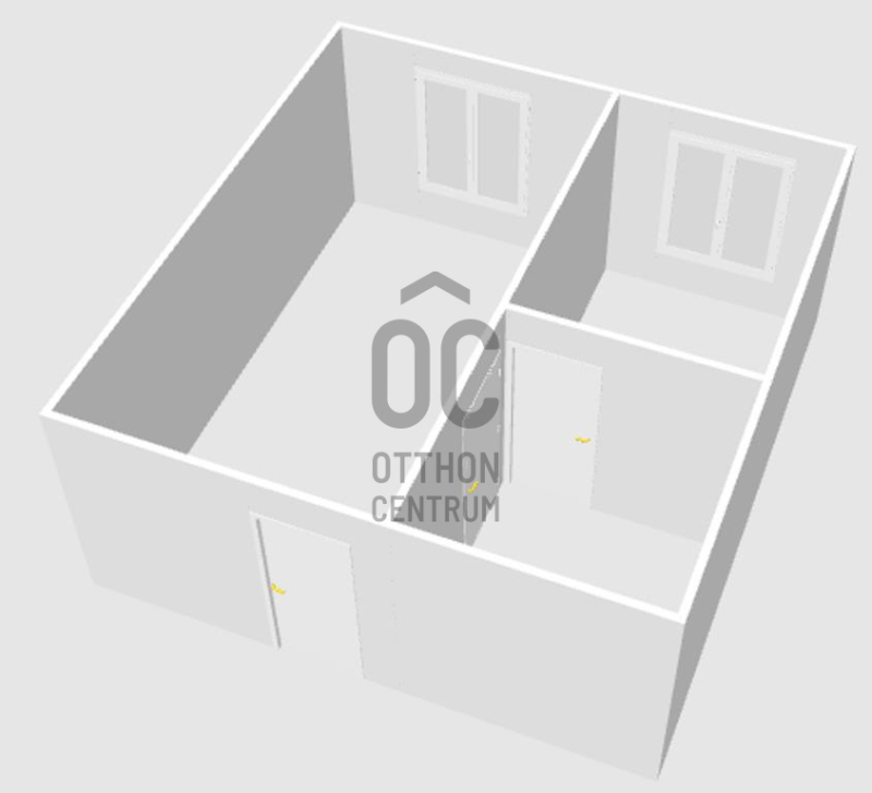 Az iroda jelenleg könnyű-szerkezetes elemekkel 3 részre van választva, de ha a vevő kéri, a tulajdonos elbontja.