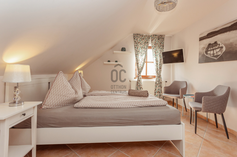 A vendégházban összesen 7 különleges hangulatú szoba és egy lakosztály került kialakításra. A ház műszakilag is kifogástalan állapotú, fűtéséről gázkazán gondoskodik, hűtését pedig klíma berendezések szabályozzák. Minden közmű rendelkezésre áll a házban.