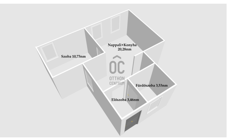 Helyiségek: előszoba,fürdőszoba+wc, nappali+konyha, szoba