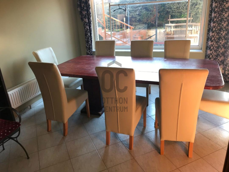A házban 8 szoba található, melyek között 5 fürdőszoba is helyet kapott, így ideális választás nagycsaládosoknak vagy akár több generáció együttélésére is.