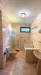 Az ablakos fürdőszobában kád, zuhany, WC és mosdó kapott helyet, ezen felül egy külön WC is kialakításra került.