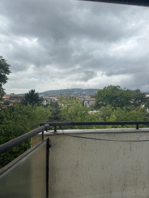 A két szoba külön bejáratú, így ideális lehet akár hálószoba–dolgozószoba elrendezéshez is. Az előszobából egy hangulatos kis társalgó nyílik, a lakáshoz pedig tartozik egy kb. 3 m²-es terasz, ahonnan pazar kilátás nyílik a budai hegyekre.