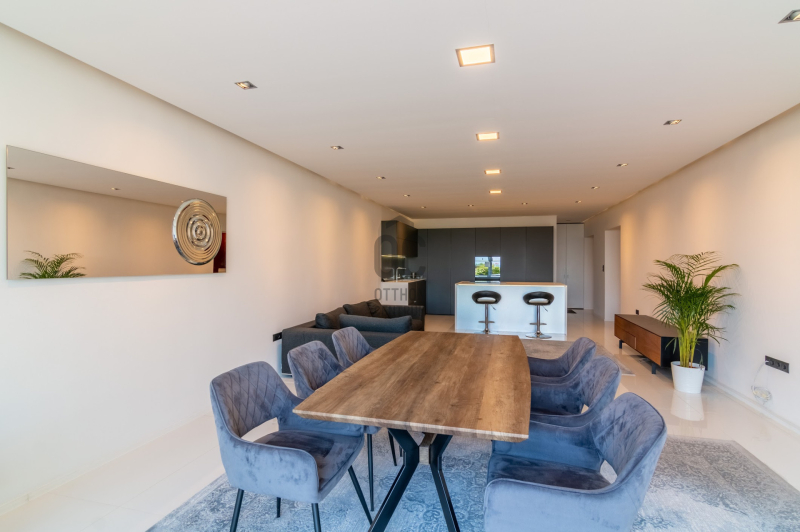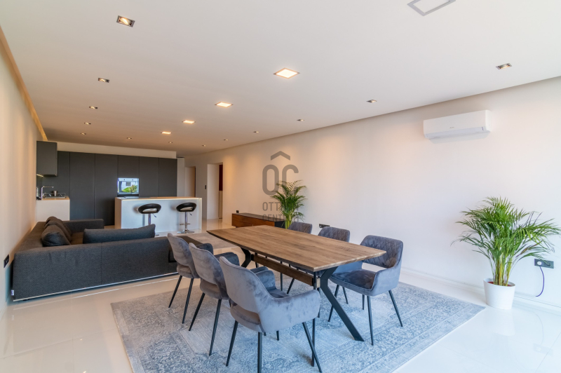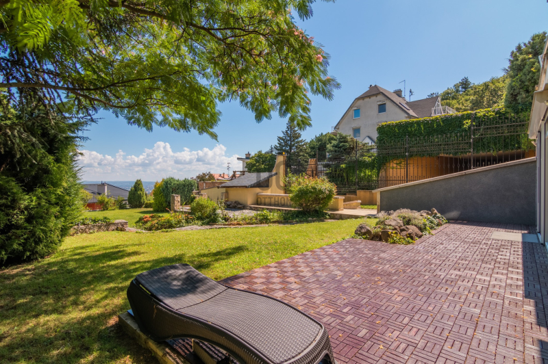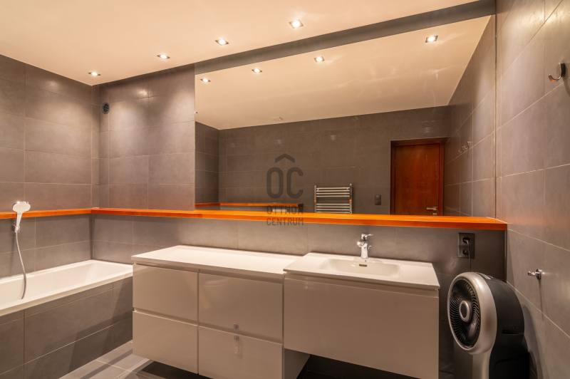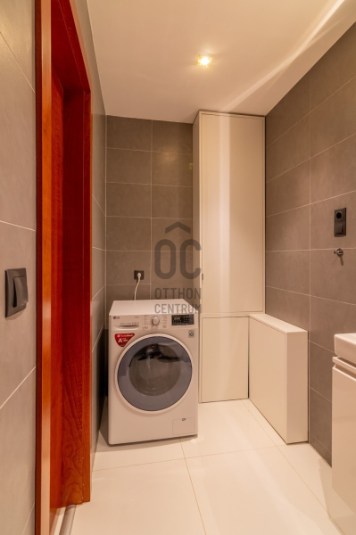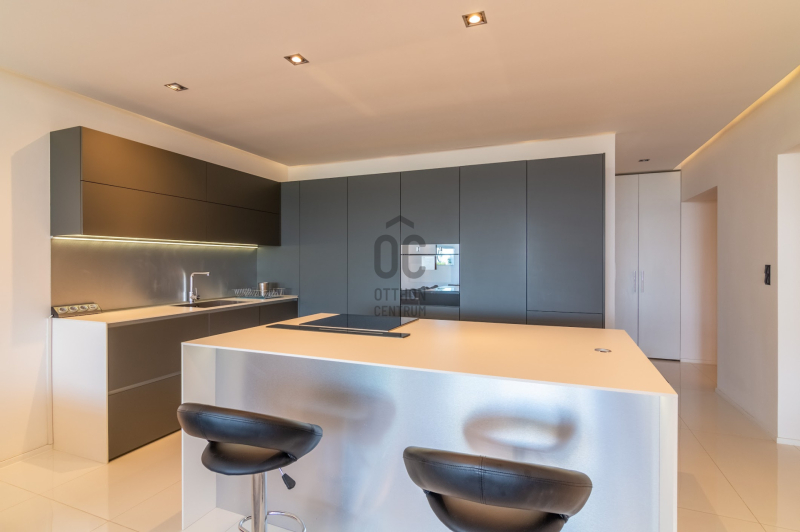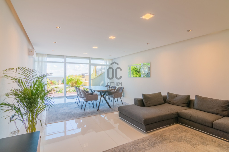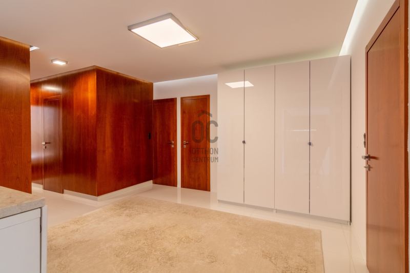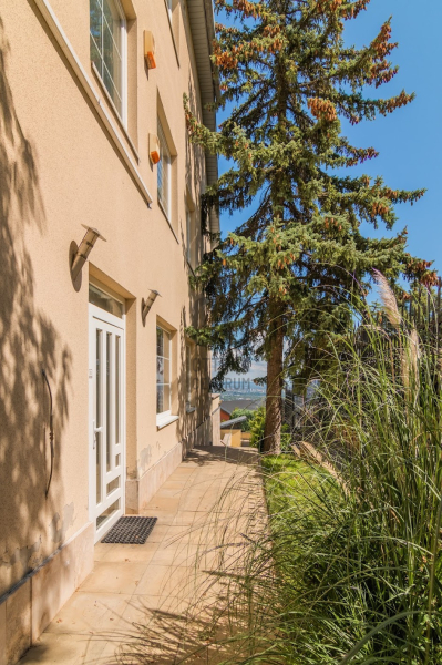 Az ingatlan 5 szobával, 3 fürdőszobával és egy 32 m²-es napfényes terasszal rendelkezik, ahonnan a zöld kert és a városi panoráma tárul elénk.