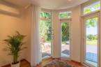 Körben ablakos, napfényes terek, zöld kertre néző panoráma