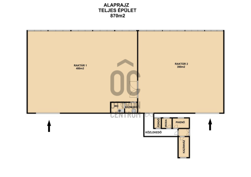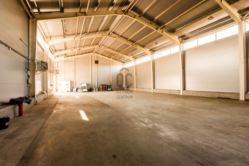 A korszerű, 870 nm-es, 9 m belmagasságú csarnok alkalmas többek közt raktározás, gyártás vagy műhely tevékenységre is.