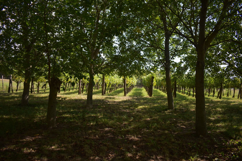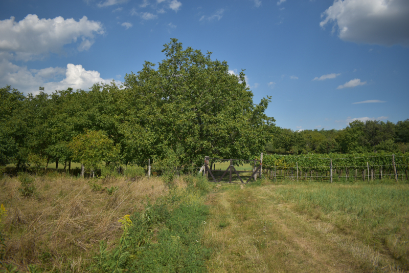 Tulajdonlapon szántó és gyümölcsös besorolással nyilvántartott, ténylegesen kb 200 Cabernet sauvignon szőlőtő és 60 db telepített diófa található.