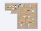 A NAPPALIRÓL és a HÁLÓKRÓL készült BÚTOROZOTT KÉPEK látványtervek. Céljuk a lakás arányainak és berendezhetőségének bemutatása.