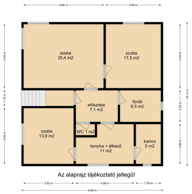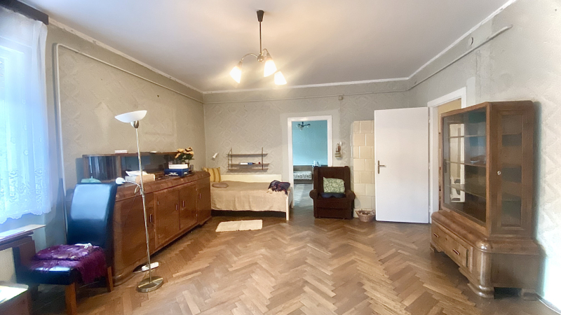 3 tágas szoba, konyha-étkező, fürdőszoba, WC, kamra és előszoba.