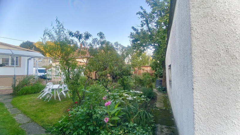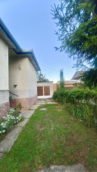 371 m²-es telek, rajta garázs, tároló, valamint 30 m²-es pince a ház egy része alatt.