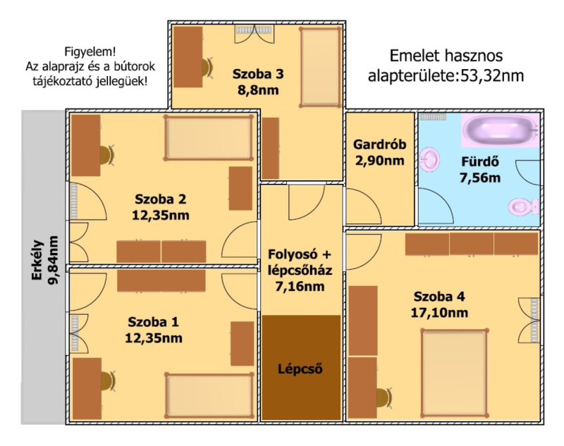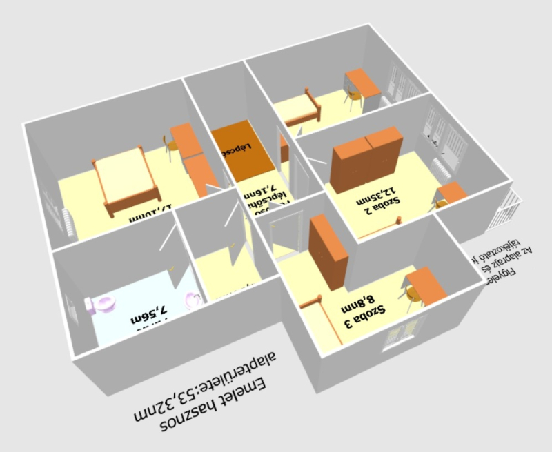 Az épület hasznos alapterülete 65,33+53,32= 118,65nm, melyben található: