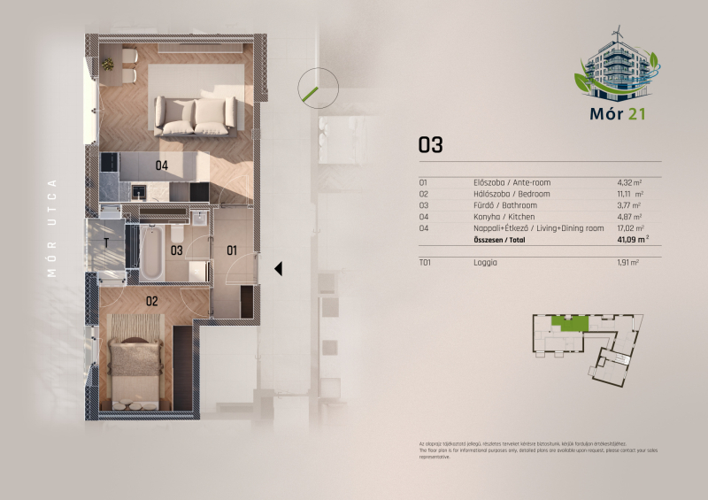 A Mór utca és Dévényi utca sarkán, egy hangulatos saroktelken épül fel ez a 23 lakásos, modern megjelenésű, mégis a környezetébe harmonikusan illeszkedő társasház. A kivitelezés során kiemelt figyelmet kapott a benapozás, a jól élhető terek kialakítása, valamint a magas műszaki tartalom.
