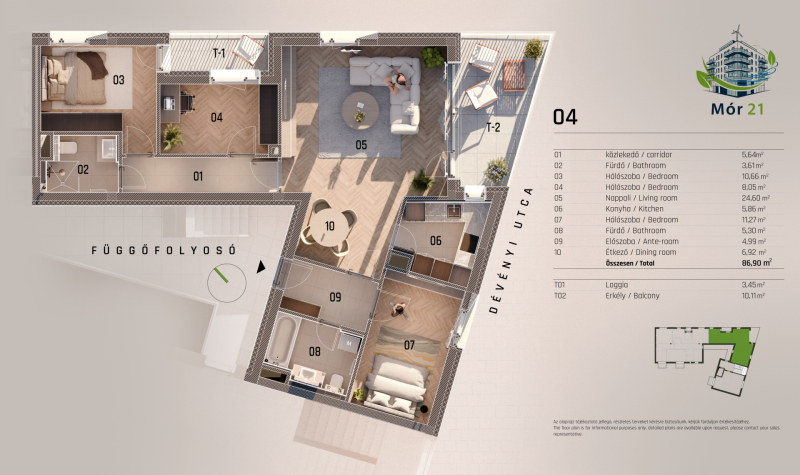 A Mór utca és Dévényi utca sarkán, egy hangulatos saroktelken épül fel ez a 23 lakásos, modern megjelenésű, mégis a környezetébe harmonikusan illeszkedő társasház. A kivitelezés során kiemelt figyelmet kapott a benapozás, a jól élhető terek kialakítása, valamint a magas műszaki tartalom.